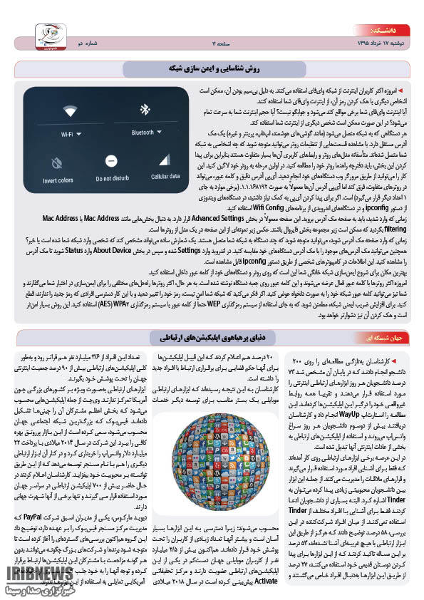 شماره دو ویژه نامه تکنولوژی با موضوعات: جهان شبکه ای، اپکده، فناوری های نوین، پرونده امنیت، دانشکده و پیکسل منتشر شد