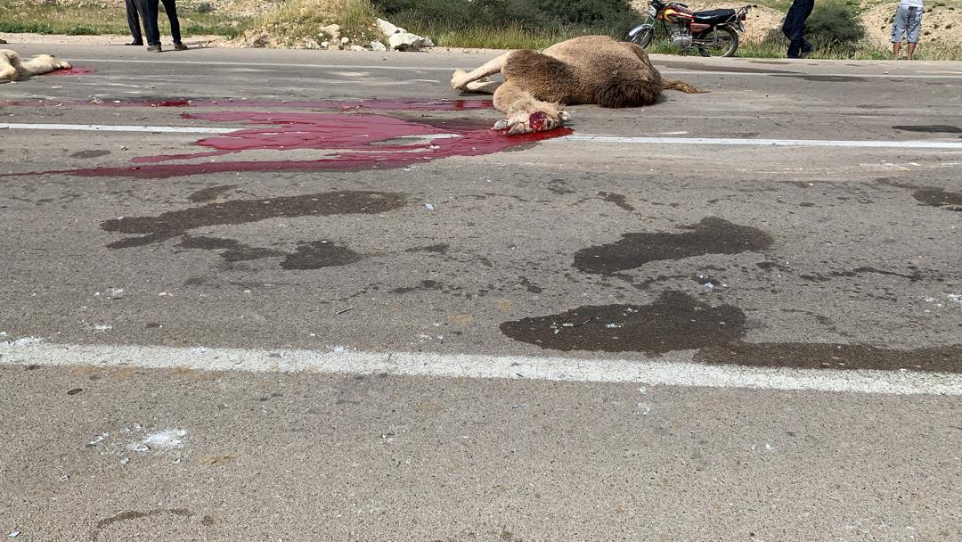 تلف شدن ۱۲ شتر در برخورد با تریلی