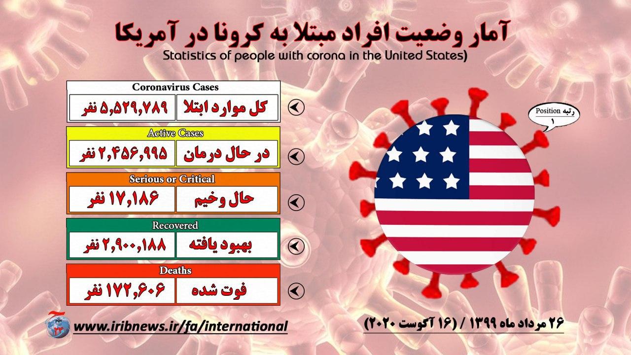 به گزارش سرویس بین الملل خبرگزاری صداوسیما؛ براساس نموداری آماری شیوع کرونا در جهان قاره آمریکا با محوریت کشورهای آمریکا و برزیل اصلی ترین کانون شیوع کرونا در جهان هستند .