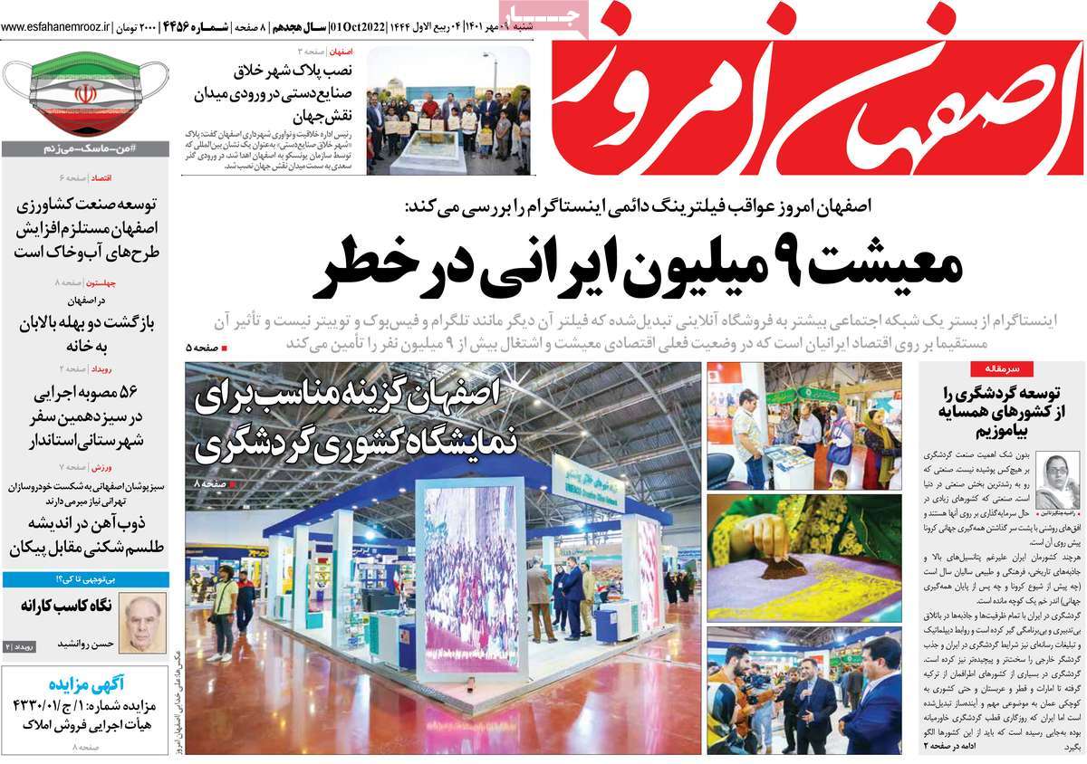 شما میتوانید صفحه اول روزنامههای امروزِ اصفهان را در اینجا مشاهده کنید.