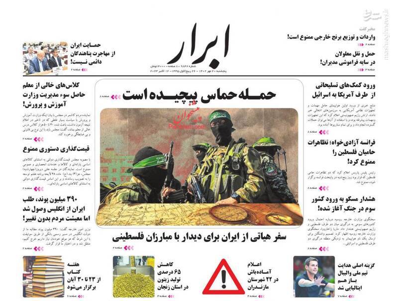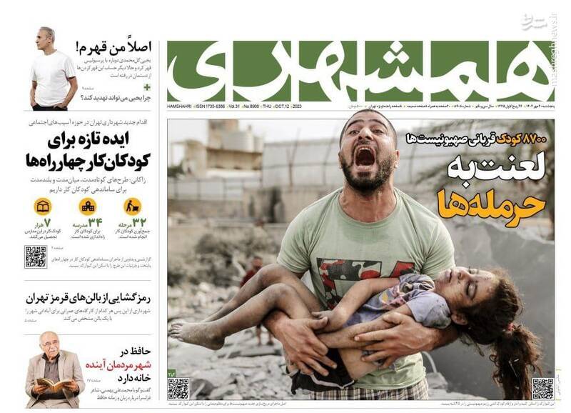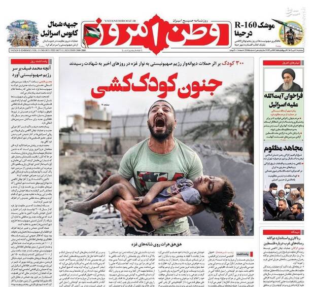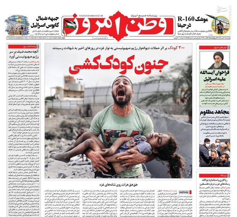 جنون کودک کشی، نصف ارتش اسرائیل را نابود می‌کنیم، مجاهد تبلیغ و تقریب، اسرائیل در میدان جنگ کم آورد به جعل خبر و کشتار کودکان متوسل شد، تیتر برخی روزنامه‌های پنجشنبه ۲۰ مهرماه است.